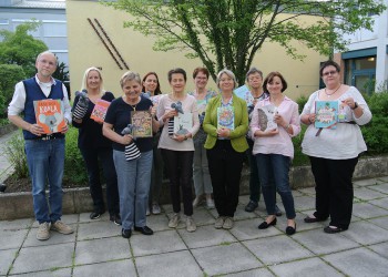 9 Damen und 1 Herr haben die Ausbildung zur zertifizierten Vorlesepatin/zum zertifizierten Vorlesepaten beendet und werden in Kindergärten, Bibliotheken, Eltern-Kind-Gruppen, Seniorenheimen oder ähnlichen Einrichtungen vorlesen. Nicht im Bild Irene Beinhofer, die bereits am 29. April beim Modul für das Vorlesen für Senior:innen abgeschlossen hat und nicht beim Abschlussmodul anwesend sein konnte.