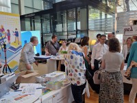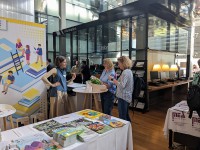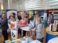 Die Angebote der Fachmesse sollen Bibliothekarinnen und Bibliothekare in ihrer Arbeit unterstützen und Impulse setzen. Rund 150 Teilnehmerinnen und Teilnehmer nahmen an der Fachmesse teil und es wurde ein buntes Programm geboten. Die NÖ Landesbibliothek ist Kooperationspartnerin der Messe und bot in ihrem Haus ein ganz besonderes „Messe-Ambiente“ für über 40 Aussteller: innen. Diese stellten nicht nur interessantes und neues aus der Bibliothekswelt vor, sondern zeigten auch kreative Inhalte. In kurzen Präsentationsslots, die den Aussteller:innen zur Verfügung stand, wurde ihr Angebot nochmals detaillierter präsentiert.