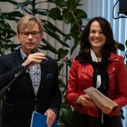 Diese Eindrücke verarbeiteten die Schriftsteller zu Texten, die nun gesammelt mit dem Titel „Worte über Orte“ am Freitag mit viel Prominenz präsentiert wurde. So meinte der tschechische Botschafter Dr. Jakub Novák in seiner Begrüßungsansprache: „Es ist mir eine große Freude, so ein literarisches Projekt gelingen zu sehen, denn der Austausch über unsere Grenzen hinweg ist so wichtig. Der deutsche Sprachraum ist als Land der Dichter und Denker bekannt, in Tschechien aber werden Dichter und Denker sogar Präsidenten!“ Nationalratsabgeordneter Lukas Brandweiner übermittelte Grüße von Landeshauptfrau Johanna Mikl-Leitner und betonte die Wichtigkeit der Bibliotheken als Schnittstelle zwischen Schriftstellern und Lesenden. Michael Stiller vom NÖ Literaturhaus, Ursula Liebmann und Martin Krafl von der Mährischen Landesbibliothek führten charmant durch den Abend. Die Lesungen der Künstler Markéta Pilátová Ferdinand Schmatz und Thomas Sautner zeigten Blitzlichter ihrer Eindrücke aus Grafenwörth, Boskovice und Znojmo.